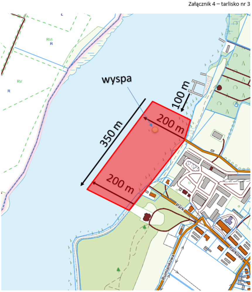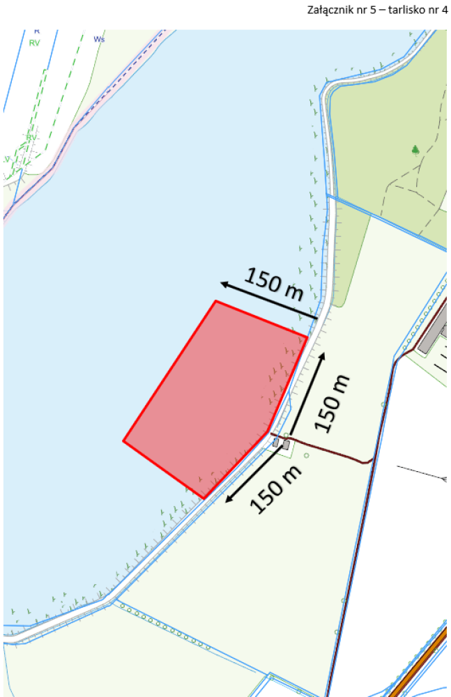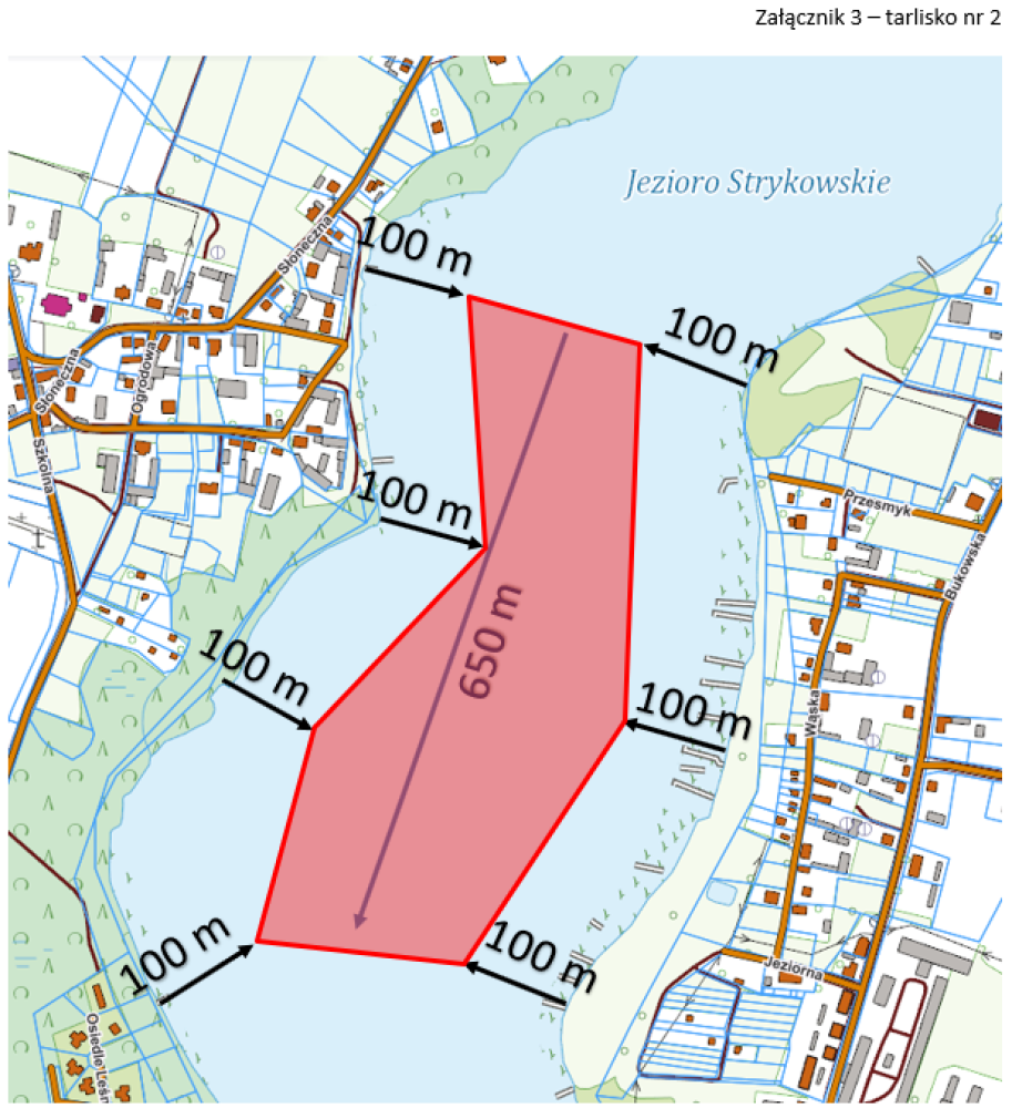 Tarlisko nr 4 obejmuje obszar o głębokości 150 m licząc pod brzegu i po 150 m w lewo i w prawu w m. Strykowo od końca ul. Parkowej.