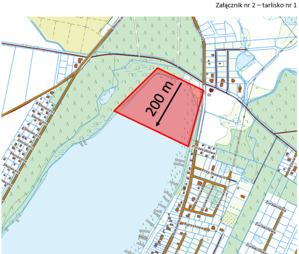 Tarlisko nr 2 obejmuje obszar w odległości od 100 m od brzegów jeziora w kierunku środka akwenu na odcinku prawego brzegu od ul. Słonecznej 18A (OSP) do końca ul. Osiedle Leśne w Słupi i lewego brzegu od szczytu cypla przy placu sportowym do szczytu cypla przy ul. Jeziornej w Sapowicach.