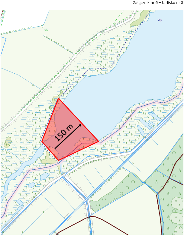 Tarlisko nr 5 obejmuje południowy kraniec jeziora o głębokości 150 m od ujścia.
