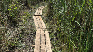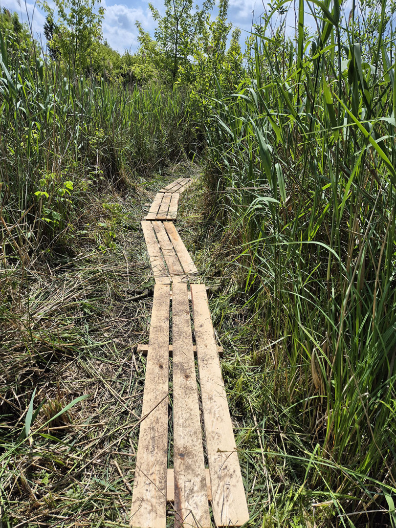 Następnie w najbardziej narażonych miejscach umacnialiśmy deskami ścieżki, jak również odnowiliśmy kilka stanowisk.