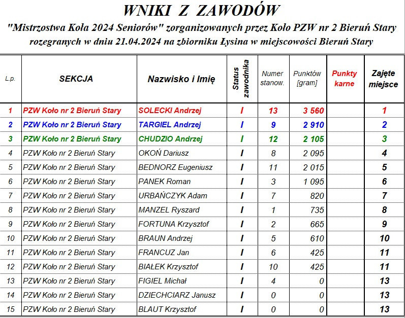 GRUNTOWE ZAWODY WĘDKARSKIE O PUCHAR KOMENDANTA SSR KOŁA PZW WOLA UHRUSKA W KATEGORII SENIORÓW - DLA CZŁONKÓW KOŁA PZW WOLA UHRUSKA