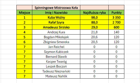 Zawody Spinningowe o Mistrzostwo Koła